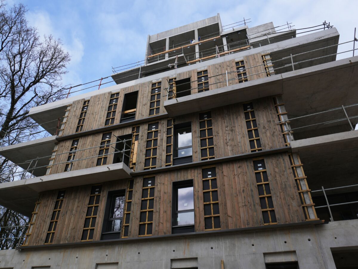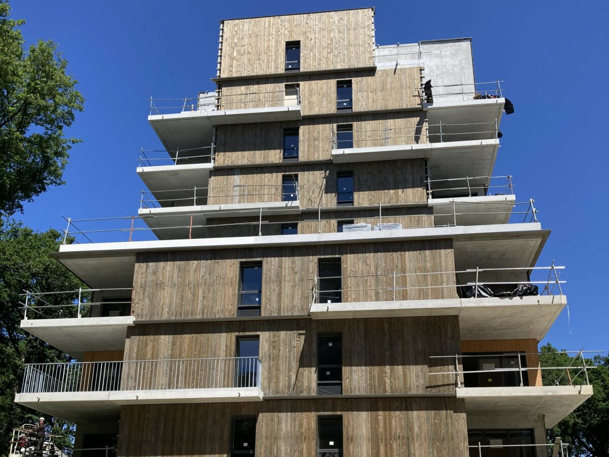 5. Installation du bardage bois sur les voiles béton des loggias.